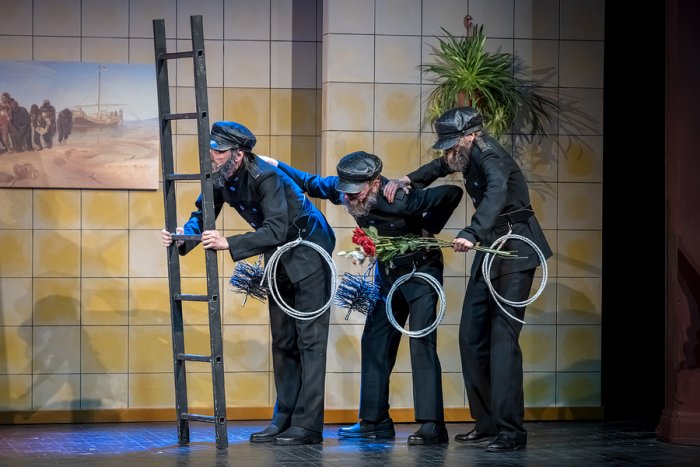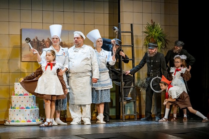 Я рад, что с нами группа Terelya – Настя Тереля, Антон Макаров и Диана Прокопив, которая тоже играет роль певицы-вокалистки вокально-инструментального ансамбля. Мы проделали невероятную работу с тем, чтобы некоторые стихи Чуковского положить на музыку, а некоторые – совместить с переработанными композициями. Получился творческий симбиоз. Я не могу сказать, что это музыкальный спектакль, где звучит много песен, но они есть – и они дают, конечно, большой объем и собранию сказочных героев Чуковского, и нашей постановке тоже.
