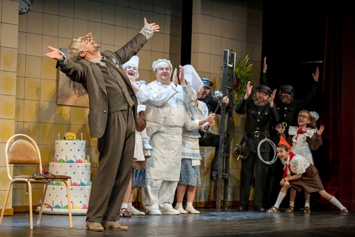 «Музыкальный объем»Я рад, что с нами группа Terelya – Настя Тереля, Антон Макаров и Диана Прокопив, которая тоже играет роль певицы-вокалистки вокально-инструментального ансамбля. Мы проделали невероятную работу с тем, чтобы некоторые стихи Чуковского положить на музыку, а некоторые – совместить с переработанными композициями. Получился творческий симбиоз. Я не могу сказать, что это музыкальный спектакль, где звучит много песен, но они есть – и они дают, конечно, большой объем и собранию сказочных героев Чуковского, и нашей постановке тоже.