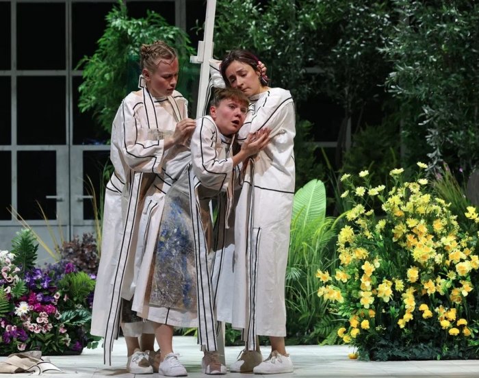 Три девушки, три одинокие души – Ада, Рая и «святая женщина» Ирина (Екатерина Новокрещенова/Александра Кесельман) – вылавливают сетью «сумасшедшего красавца» по фамилии Бабочкин (Борис Янковский/Александр Моровов). Еще 4 дня в платной палате – и он должен лететь в Вашингтон с родителями. У них, Бабочки и Нарцисса (Серафима Огарева и Амбарцум Кабанян) – новая работа по контракту, у него – внезапная любовь и «поэтические жесты», от селф-харминга до исполнения песен собственного сочинения. Потому что, как сказал Августин Блаженный, «поёт тот, кто любит».