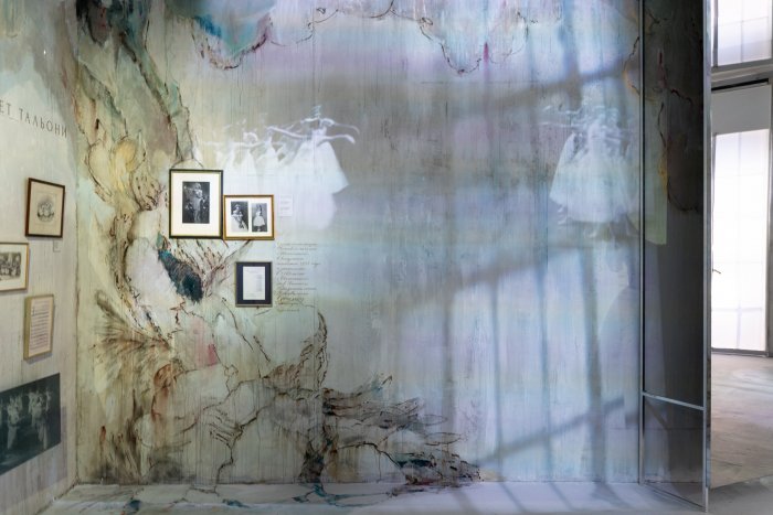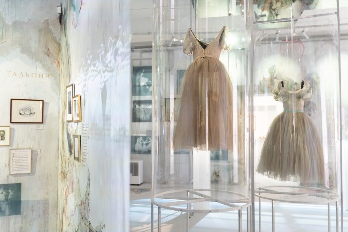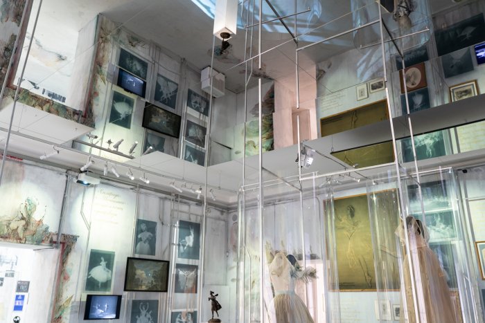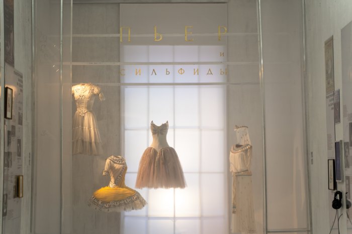 Экспозиция «Пьер и Сильфиды» посвящена французскому балетмейстеру Пьеру Лакотту, который ушел из жизни в 2023-м. Театральный музей продолжает знакомить посетителей с искусством балета. Так, в прошлом году представляли масштабный проект «Балет. Притяжение», темой которого стал дуэтный танец. В основу новой экспозиции легла коллекция из личного архива, подаренная музею вдовой Лакоттта, балериной Геленой Тесмар. Ознакомиться с ней можно до 5 апреля.На входе в первый зал за стеклом, на котором можно прочитать название выставки, встречают четыре балетных костюма, точно парящих в воздухе. Экспозиция охватывает важнейшие этапы творческого становления и постепенного оттачивания мастерства балетмейстера — от юношеских лет до обретения всемирного признания. Мы точно становимся зрителями метафорического сеанса, на котором передаются глубинные ощущения и впечатления самого Лакотта от балетного искусства. Воздушная, зыбкая, эфемерная среда передана через белоснежные тона стен с мелкими брызгами, рассеянный свет из окон, покрытых полупрозрачной тканью, зеркальный потолок, игру света и тени. На стенах проецируются точно порхающие сказочные существа-балерины.