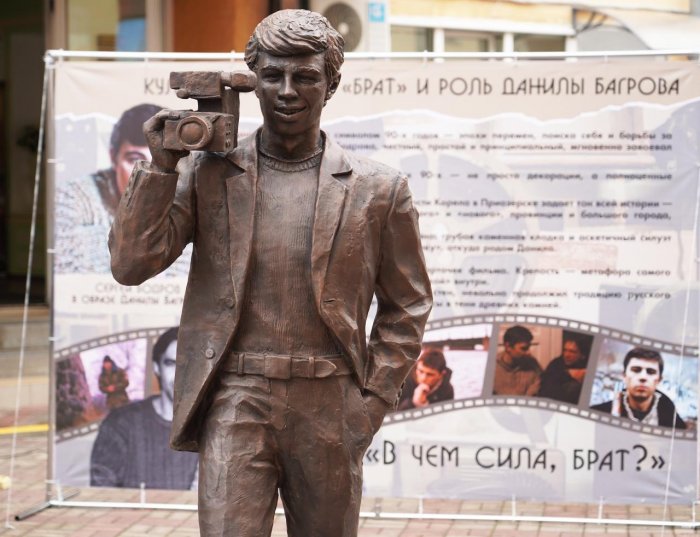 Скульптуру установили у киноконцертного зала Приозерска. Именно в этом городе по сюжету фильма «Брат» родился и вырос Данила Багров, герой Сергея Бодрова. Автором памятника выступил доцент кафедры реставрации и экспертизы культуры Санкт-Петербургского государственного института культуры Артем Рычков.