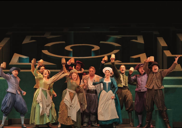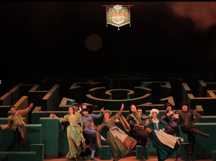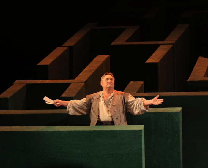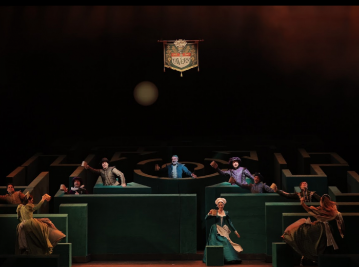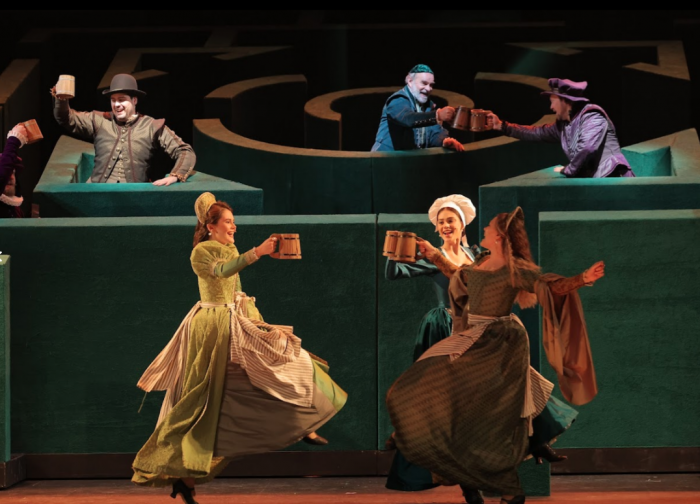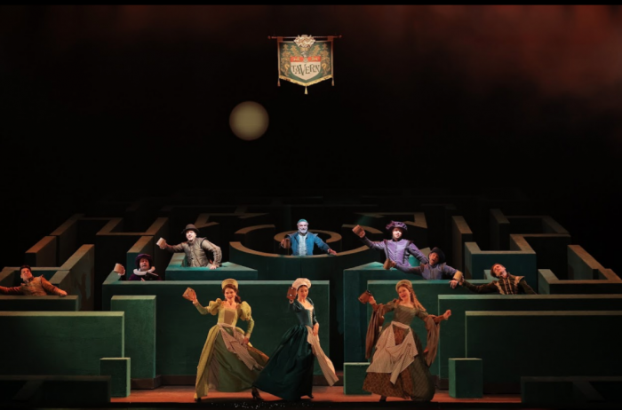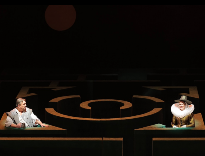 Лабиринт становится идеальной метафорой путаницы из интриг, главным двигателем которых выступает сэр Джон Фальстаф. Герой получился дерзким, хитрым и бесконечно уверенным в себе. В мире Фальстафа нет границ и предрассудков. Он любит жизнь, находит приключения и веселье каждый день, но вовсе не выглядит ветренным и пустым. К финалу героя становится даже немного жаль. Может, он загрустил после песни о таинственной подруге с зелеными рукавами, а может, как подсказывают ему персонажи, на него давят годы.