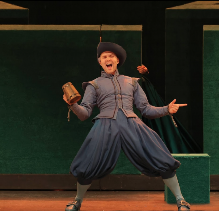 В спектакле сыграла дочь Клюквина, Тоня. В образе феи она, рассыпая на всех вокруг искрящуюся пыльцу, начинала эту сказочную историю. К числу таких волшебных деталей, из которых и складывается превеселый виндзорский мир, относятся и музыкальные номера, и яркие объемные костюмы эпохи королевы Елизаветы.