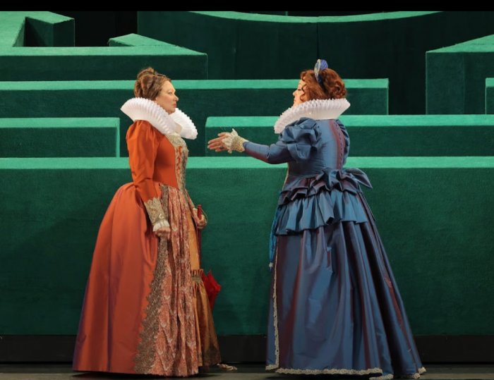Виндзорские женушки оказались идеально слаженным дуэтом. Миссис Пейдж – женщина суровая и резкая. Миссис Форд – королева драмы и обмороков. К ее манере нужно немного привыкнуть, чтобы потом вместе со всем залом ждать этих приливов чувств.