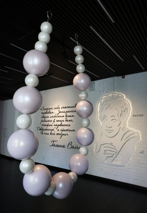 В фойе театра открылась масштабная выставка, где подробно рассказывается о знаковых спектаклях «Современника» – от «Голого короля» и «Эшелона» до «Обыкновенной истории» и «Трех сестер». У входов в амфитеатр расположилась инсталляция, имитирующая фасад театра. На него одновременно транслируется множество видеопроекций – от фрагментов спектаклей до имен артистов, которые служили в театре. Все они складываются в настоящую вселенную театра «Современник». «У руля» этой вселенной стояли два человека – Олег Ефремов и позже Галина Волчек, которая почти 50 лет была худруком «Современника». Обоим руководителям посвятили особые, очень теплые и сделанные с вниманием к деталям, пространства в левом и правом крыле театра.