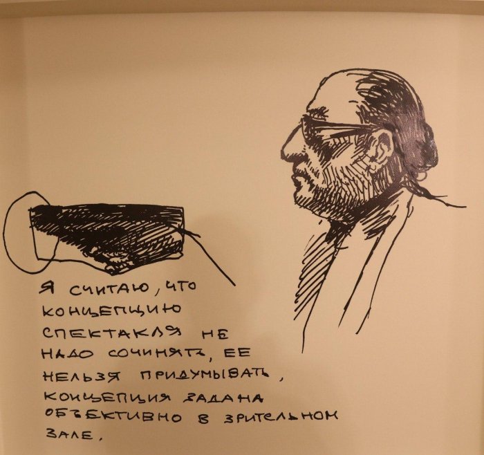 В результате этой кропотливой художественной и исследовательской работы возникла скрытая «вселенная», в которой Товстоногов мог встретиться с Кантом и Моцартом, дружить с Шопенгауэром и Гёте, вести диалог со своим современником Тарковским и с нашим современником Папой Римским.