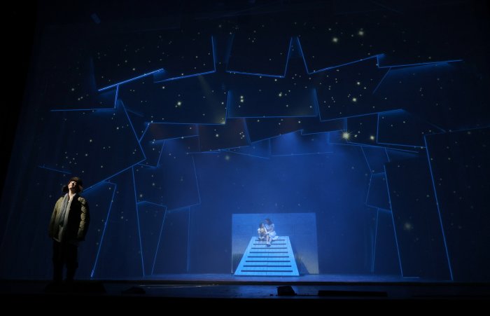 «В спектакле соединяются музыка и хореография, происходит бесконечное взаимодействие актера с проекцией-декорацией. Такое 3D существование — очень непростая задача для актера», — отмечает Нина Чусова.