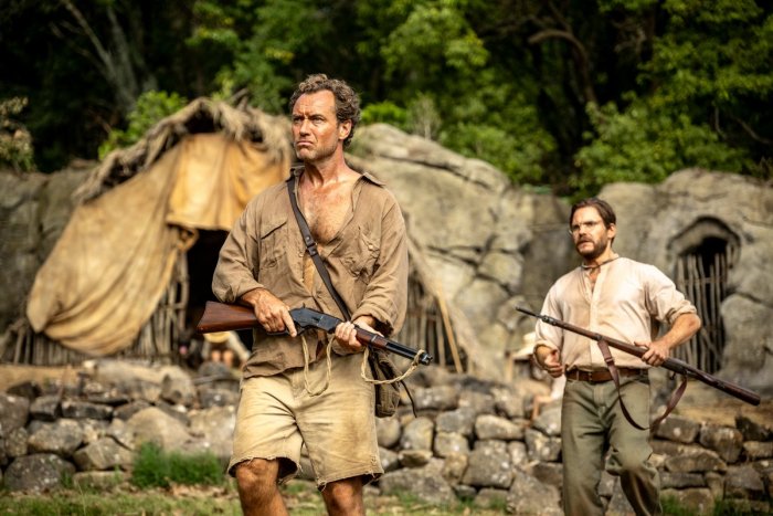 Джуд Лоу играет доктора Фридриха Риттера – философа и вегетарианца, решившего на острове построить собственный «новый мир». Впрочем, его гуру-идеализм быстро сменяется жестокостью – к себе, к другим, к самой идее просвещения. Ана де Армас в роли самозваной баронессы в красном платье приносит на остров энергию хаоса – её появление разрушает и без того хрупкое равновесие.