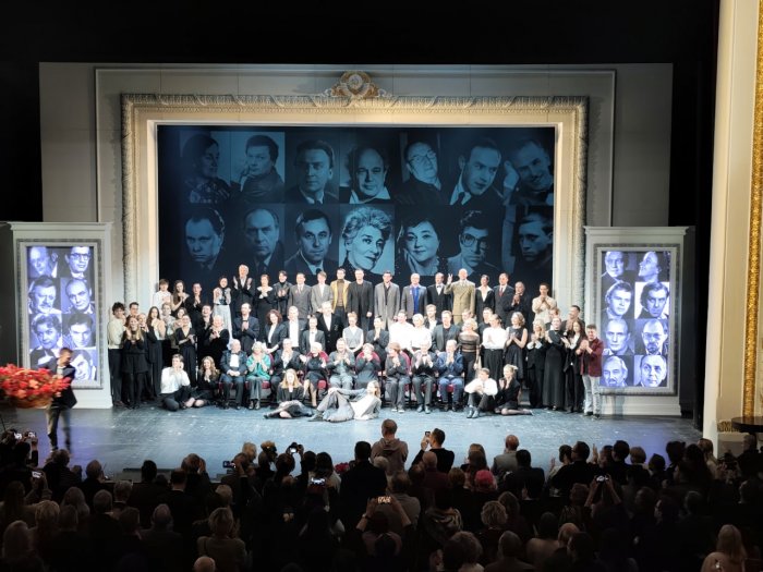 В программке была заявлена продолжительность спектакля «2 часа (без антракта)», но полтора часа спустя антракт все же объявили, и вечер продлился в итоге полных 3 часа. Но когда в твоем арсенале столь многогранная история, бесконечная смена главрежей и худруков, да еще и множество прославленных имен, удержать баланс, уложиться в хронометраж – задача не самая легкая.