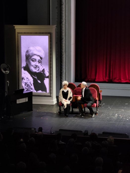 Алиса Коонен, Василий Ванин, Ольга Викландт, Михаил Названов, Борис Бабочкин, Алексей Дикий, Иосиф Туманов, Фаина Раневская, Владимир Высоцкий, Алёнушка (т.е. главная героиня спектакля «Аленький цветочек», который идет на этой сцене с 1950 года) – это персонажи только лишь первой главы. Всего на вечере их было пять. Фрагменты спектаклей, восстановленные, разыгранные вновь, перемежались с главами из актерских мемуаров, с фотографиями и кинохроникой. Звучали и воспоминания свидетелей. Так, в частности, актриса Тамара Лякина, работающая в труппе с 1960 года, рассказывала о своем педагоге Борисе Равенских (руководил Театром Пушкина с 1960 по 1970 год):