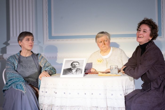 Победили действительно трое, точнее «Три». Это эскиз Екатерины Половцевой по пьесе «Розовое платье с зеленым пояском» — фантазийному продолжению чеховских «Трех сестер», где образ Наташи складывается из монологов нескольких персонажей. «Знаете ли вы, как трудно быть женой мужчины, у которого куча сестер?» — говорит Наталия Ивановна. В длинных монологах она и ее «коллеги» по спектаклю — собственная дочь Софочка и жена наташиного любовника Протопопова — рассказывают то, что осталось за рамками чеховской пьесы. Трех героинь мы видим спустя несколько десятилетий со времени, охваченного Чеховым. Так, в истории жизни Софочки отражается история всей страны. Рожденная мещанкой, при советской власти она работала в цензурном комитете, удостоилась лагерного этапа, была реабилитирована и теперь — умоляет отправить ее в дом престарелых, чтобы хотя бы там чувствовать себя менее одинокой.