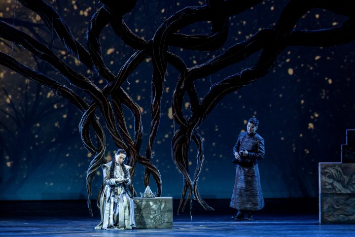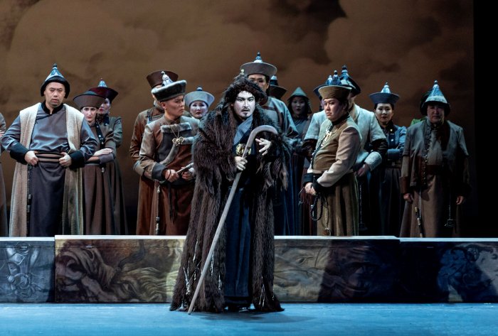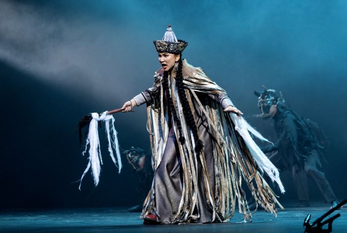 Весомую лепту в мистическую атмосферу вносит световая партитура и видеопроекции (художники Евгений Виноградов и Арюна Булутова). Есть среди них вполне реалистические изображения с московским Кремлем и степями-юртами, но преобладают загадочные переливы форм и красок. Публика дивится картинке и с любопытством вслушивается в широкодиапазонные напевы. Вывод? Если национальная опера хорошо написана, сыграна и спета, а театр не поскупился на декорации-костюмы-технологии, успех гарантирован и дома, и на выезде.