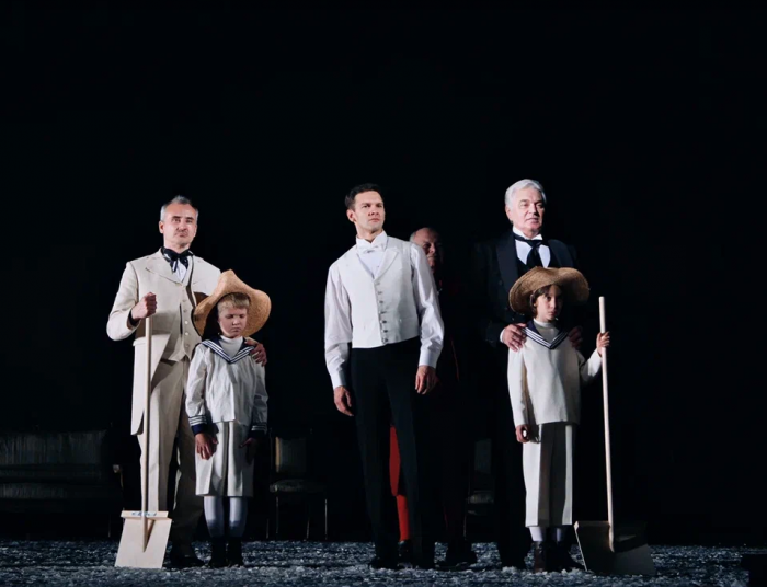 Спектакль выстроен на огромной практически пустой сцене, что сразу создает атмосферу душевной пустоты и одиночества. Минимум декораций помогают зрителю сосредоточиться на игре актеров. В этом пустом пространстве, с разбросанными игрушками, подарками и деревянными лошадками резвятся дети, намекая на то, что все мы из детства и что нет ничего ценнее семьи.