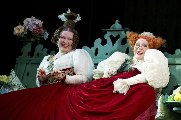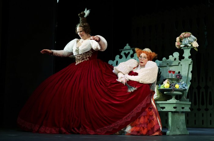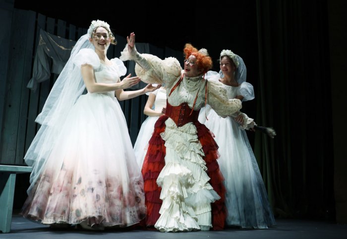 Ослепительная Марина Неёлова, едва узнаваемая в образе свахи Красавиной, очень органична и невероятно смешна. А вместе с властной и эмоциональной героиней Натальи Качаловой так хочется в один голос сказать ставшее классикой: «Я добрая!»Во время сна Бальзаминова по сцене летают – то падая, то поднимаясь откуда-то из глубин бальзаминовской фантазии – белоснежные цветы на лианах. Их необычайную легкость поддерживают парящие, словно облака, платья хореографической группы невест, о которых грезит Михайло Дмитрич. Неповторимый характер каждой подчеркивают пышные, скрывающиеся под прозрачной тканью, подолы (художник по костюмам Мария Боровская). Так и складывается атмосфера желаемой Бальзаминовым свободы – фантазии, где возможно все. «В сумерках отчего ж и не заняться иногда, не помечтать-с?», – говорит Михайло Дмитрич.