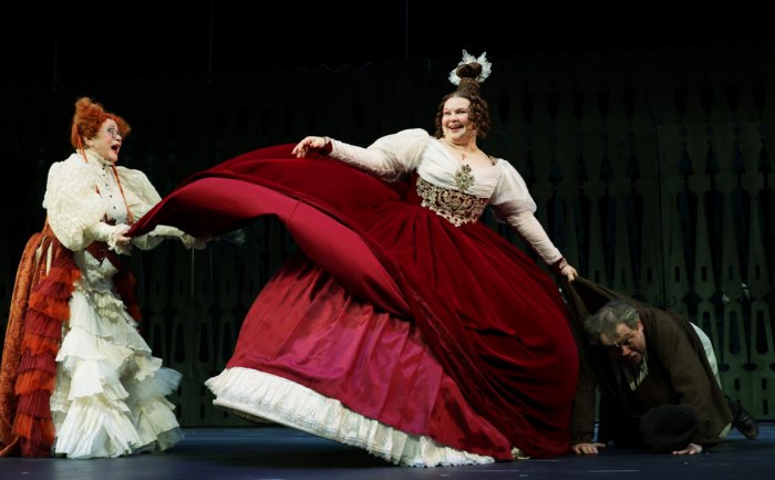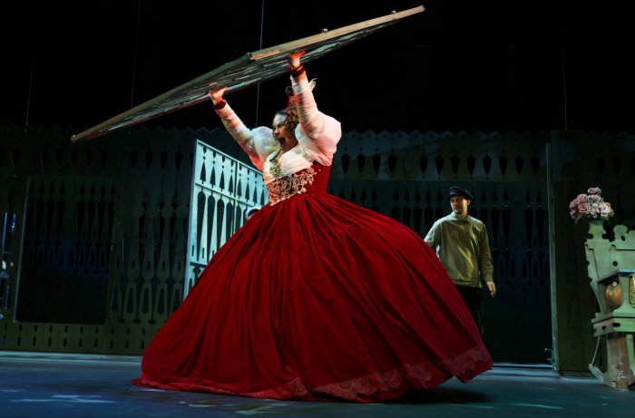 В спектакле Серегя Газарова юмор Островского приобрел современные нотки и прозвучал по-русски весело (в буфете гостей ждали бублики и пирожки, самовар и даже каравай).