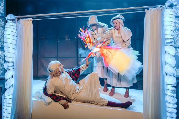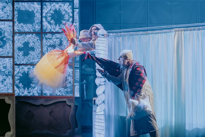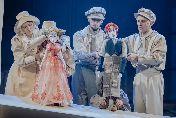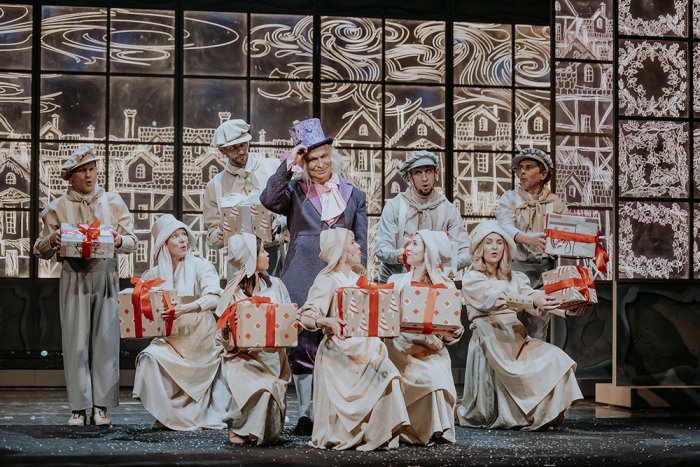 Сценограф постановки художник Виктор Плотников. Он вдохнул в сценический Лондон рождественскую волшебную атмосферу и населил его кукольными персонажами: тут и планшетные куклы, и паркетные, и куклы-костюмы.