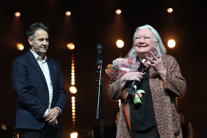 В этот вечер имя Юрия Бутусова, трагически погибшего в августе 2025 года, звучало еще не раз. А когда во время минуты памяти на большом экране появился его портрет, аплодисменты в зале усилились.