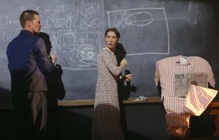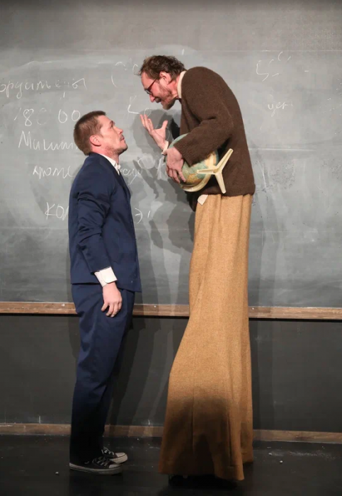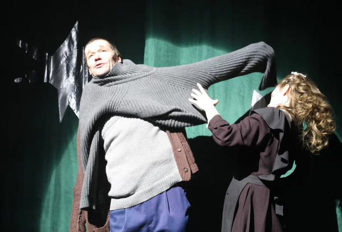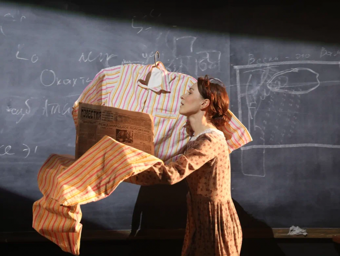 «Мне интересно перепрыгивать туда-сюда и резко меняться, – высказалась Вероника Васант, выходящая на сцену в ролях мамы главного героя и учительницы. – Текст Саши Соколова очень красивый, он утягивает за собой, и так тяжело не поддаться, не уйти в эфемерную философскую литературность! Но у нас есть ключики, мы их находим и разговариваем этим философским литературным текстом бытово, кладем его на определенные действия, и тогда в нем начинают звучать вторые смыслы. Работать с таким материалом безумно интересно. Потому что мы все в жизни никогда не говорим напрямую, даже если это общение между родителями и детьми».