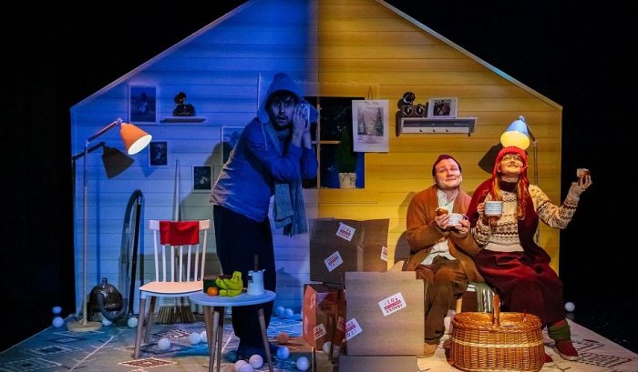 Когда их пути пересекутся, начнется история о настоящей дружбе. Причем в спектакле Ловянниковой появится еще один персонаж, отсутствующий в повести Дашевской, девочка Йоханна. Её задача – открыть глаза Мастеру на красоту зимы, времени, когда можно просто наслаждаться снегом. Актеры даже сыграют «двухминутный музыкальный номер, состоящий из хруста», когда снегопад избавит от чавкающей грязи. Вообще «Зимний мастер» построен на принципе тотально звучащего пространства, поэтому в музыку здесь превращаются самые обычные предметы: открывается дверь – «скрипит» виолончель, наливается чай – звучит скрипка, даже пылесос и коробка из-под печенья работает как музыкальный инструмент.