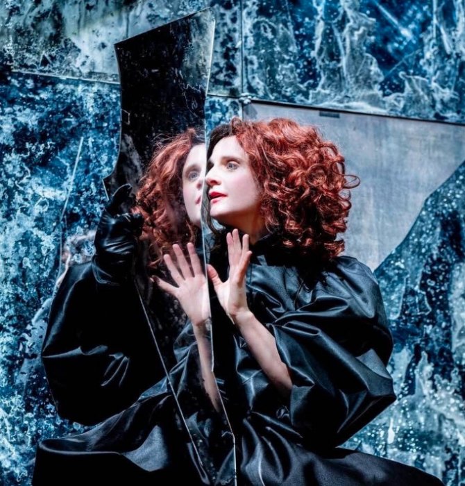 Или легендарная Сара Бернар (все женские роли в спектакле играет одна молодая актриса Юдит Шемиа). Священное чудовище, двуликое, двуполое. Актриса-оборотень. Она может быть и мужчиной, и женщиной, и ангелом, и дьяволом. Она все время играет, даже когда спит. А спит она, как известно, в гробу. И никто не знает, когда она настоящая. Homo ludens. Человек играющий. Это ведь можно сказать и про Гамлета.