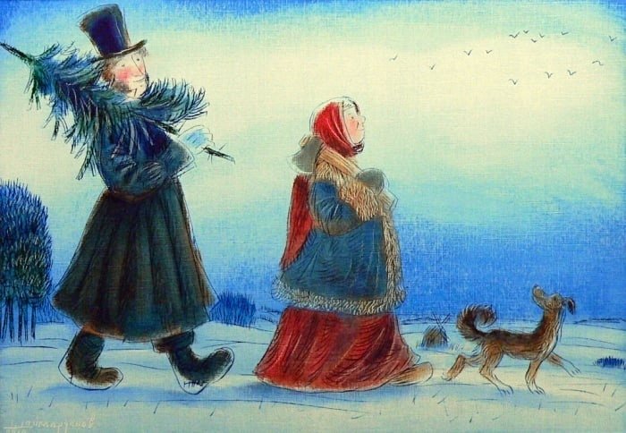 — Кажется, что иллюстрация — это просто. Есть текст — сказка или роман, повесть, стихи. Читай — и рисуй то, что там написано. В этой сфере есть великие мастера. Геннадий Спирин, например, гениальный художник, который всё нарисует — запонки, пуговицы, то, что на столе стоит. Такая иллюстрация как картина. Она сама по себе живет. Смотришь и поражаешься, как все отрисовано — до блика в зрачке, до малейшей шерстинки. Видно, что человек изучал материальную культуру того периода, все, о чем автор написал.