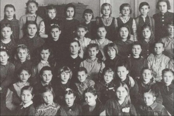 Так и учились мы пока была зима… Учились прямо в пальто, в рукавичках, в шапках... Бумаги не было, тетрадок не было. Были, конечно, учебники, но их берегли, а писали на полях старых газет. Это была наша единственная бумага. Но потом весной стало полегче.