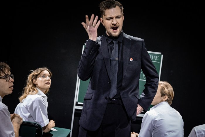 – Режиссер Галина Зальцман здесь буквально на пальцах объясняет, что идея – страшная штука (Достоевский препарировал эту тему в «Бесах»). Как из игры под лозунгом «сила в дисциплине, сила в единстве» вдруг возникает целая идеологическая машина и манипуляции. Даже будучи спецом, можно не заметить, не уловить, как это происходит. Безотносительно конкретного случая, когда американские школьники превратились в группу «гитлерюгендов» – движение «Волна». На их примере видно, как идея «пожирает» и куда она выруливает. Человек не всегда может её контролировать, даже если сгенерировал сам.