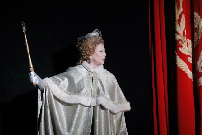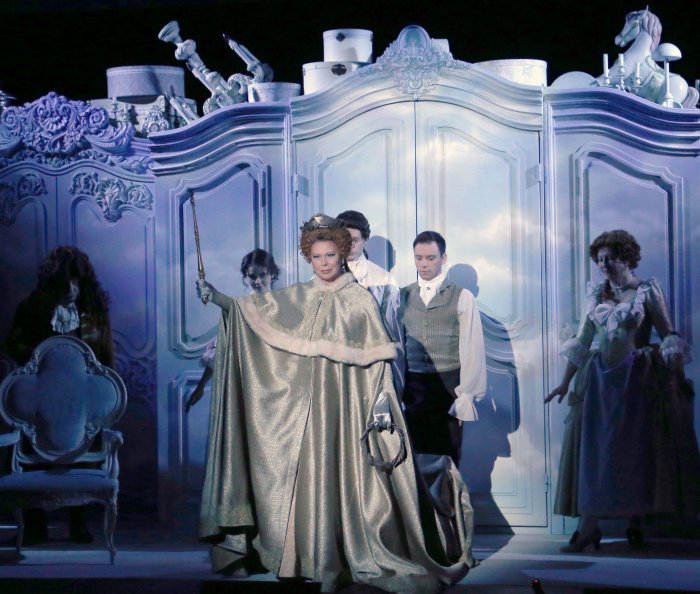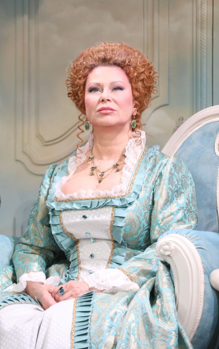 Надежды режиссера оправдались и знакомство с пьесой оказалось для зрителей действительно очень приятным. С первой же минуты, когда открылся занавес, кстати с вензелем Императрицы, зритель окунулся в атмосферу эпохи написания пьесы. На фоне декорации в позе монумента, установленном в Петербурге, над артистами возвышалась статная и красивая Императрица. Из её уст прозвучала коротенькая лекция о славных делах, совершенных в годы правления Самодержицы.