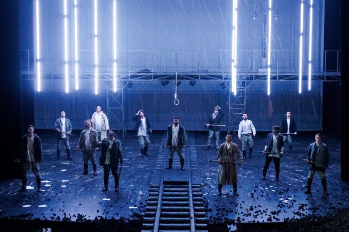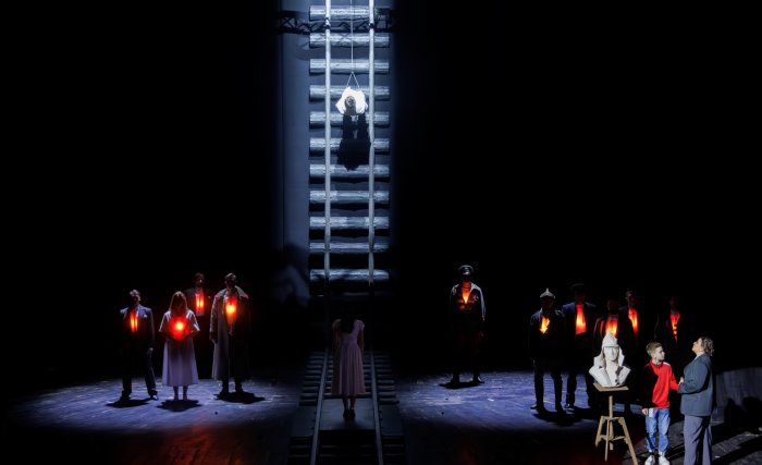 Роман Островского поставлен на рельсы современного театра, оформлен как рок-мюзикл с яркой визуальностью. Рельсы в буквальном смысле становятся доминантой сценографии Ольги Кузнецовой. Путь проложен от авансцены прямиком в арьер и, как показывает пафосный финал, ползет на колосники, становясь Stairway to Heaven. Железнодорожная эстетика окружает Павку Корчагина с детства, но тут реализуется еще и прямая метафора «крестного пути»: главный герой периодически идет по рельсам, шагая тяжело, высоко подымая ноги, словно искалеченный. Нет прямого пути для свидетеля революционного преобразования России.