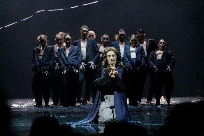 Импозантный молодой человек, поразительно артистичный и опасный, как Лель из «Снегурочки», Коровьев одет в длиннющее яркое пальто, как у эстрадной звезды, что бесконечно удлиняет его фигуру, делает ее текучей, сюрреалистичной. Азазелло в исполнении Эрика Тарханидиса в целом тоже в ужасе от своей миссии: ярче всего артист проявляется в сцене на скамейке. Маргарита своей неуемностью, подозрительностью, метущимся характером, требовательностью истерзывает беса, который привык приказывать, а не уговаривать и флиртовать, угадывать капризы женщины и их удовлетворять.