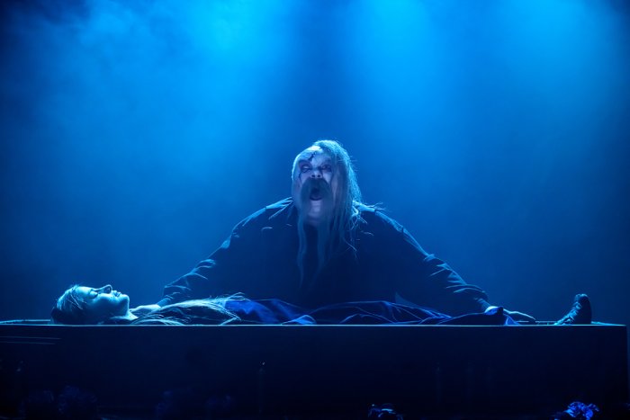 Жанр спектакля определяется как «хоррор», но страшного в нем немного. Постановку можно назвать жуткой лишь в той мере, какую может себе позволить театральная сцена. Здесь нет уродливой нечисти, хоррор-приемов. Зло в постановке очень плавное, почти бездействующее. На это работает и funeral doom metal в качестве музыкального сопровождения. Он отличается медленным темпом, глубоким и тяжелым звучанием, мрачной, по сути, похоронной атмосферой. Здесь тьма окружает героя со всех сторон и в ожидании смотрит на него.