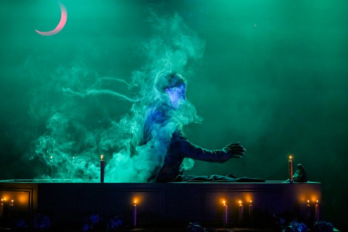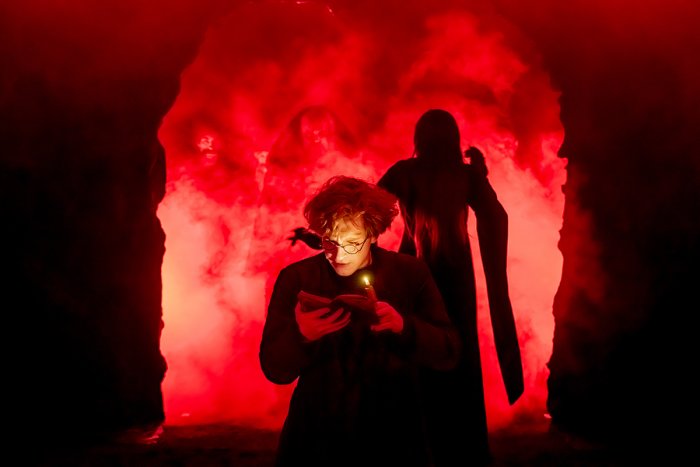 На Новой сцене МХТ имени Чехова показали премьеру – спектакль «Вий» в постановке Арсения Мещерякова. Современный взгляд на гоголевскую историю обернулся ироничной сказкой с оттенками хоррора.