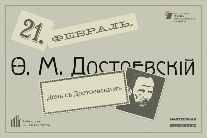 21 февраля Библиотека им. Некрасова и Мастерская Брусникина проведут «День съ Достоевскимъ» – 12-часовой фестиваль-исследование жизни классика и его героев. Вход свободный, по регистрации. Начало – в 12.00.