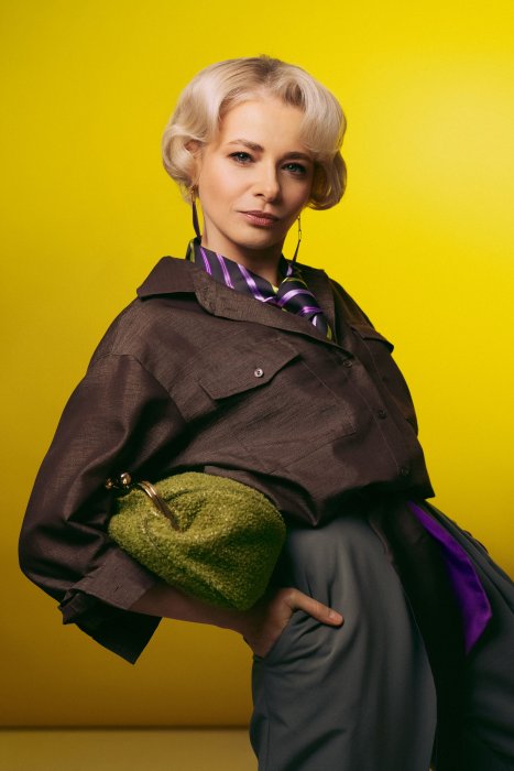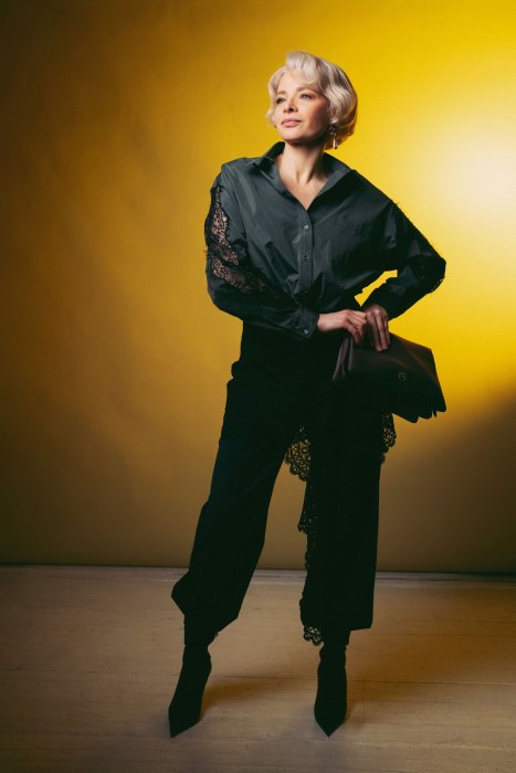 Блуза PINKO; сумка PINKO; брюки/обувь/серьги ElegantChic бутик аренды вечерних нарядов; платок из вологодского кружева – собственность стилиста; стилист / Светлана Голякова; визажист, стилист