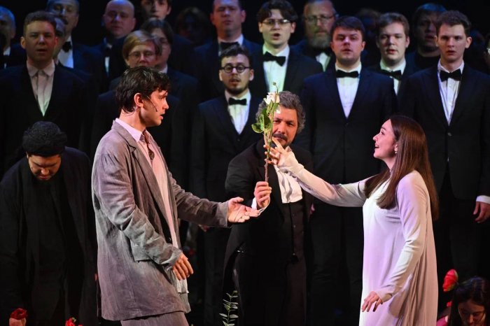 Зритель словно проникает в нотные листы Чайковского, и сама опера оживает на сцене. Действие «Иоланты» разворачивается в королевском саду, полном цветущих красных роз. Это полуреальное, мистическое пространство, полное красоты и трагичности, которая в финале оборачивается всеобщим счастьем и благостью.