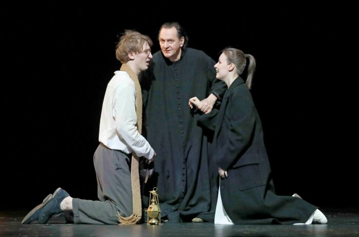 «Величина Шекспира такова, что самое сложное – и в подготовке к работе, и в самих репетициях – остановиться, – говорит дебютирующий на исторической сцене Вахтанговского театра Олег Долин. – Перестать вкапываться. Выбрать какой-то единственно верный вариант. Потому, что диапазон того, что он предлагает, огромен. Тут и театральность. И философия. И высота, и низость. Бытовой театр. Образный. Поэзия. Проза. В этом его колоссальная сила. Но здесь и сложность. И, пожалуй, «Ромео и Джульетта» – это квинтэссенция этого шекспировского мира, где человеческий дух, ведёт неравный бой с «миром безобразия и зла». Эта пьеса очень интересно устроена. Тут, в отличие от прочих трагедий Шекспира как будто нет отрицательных героев в привычном понимании. Есть трагедия случая. Трагедия стечения обстоятельств, приводящих, к тем или иным событиям. В этой пьесе все герои мне интересны – всем я симпатизирую, так или иначе».