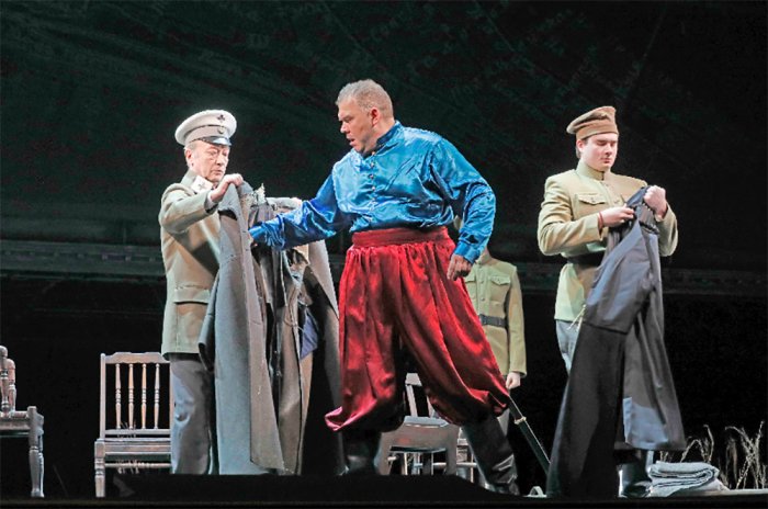 В масштабном спектакле занято около 40 артистов, в том числе студенты ВТУ им. Щепкина.