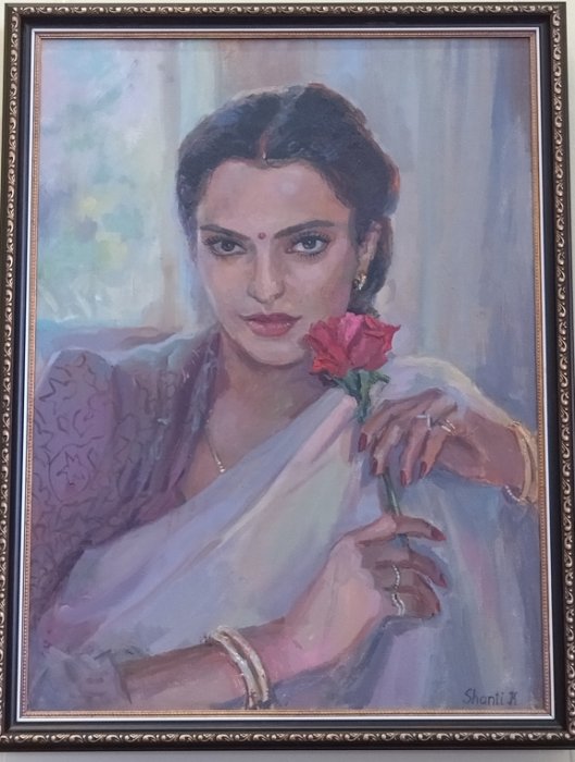 Шанти Кушваха создаёт образы «прекрасной Индии», столь пленительные для русского воображения. На её картинах – средневековые архитектурные ансамбли, «места Силы», такие, как усыпальница Тансена – великого придворного певца XVI века, о чудесном пении которого слагают легенды; танцовщицы в ярких сценических костюмах; цветущие красавицы в роскошных сари и драгоценностях. Всё это написано с натуры, в своеобразной и очень «индийской» по духу манере, сочетающей в себе реалистическую точность и внимание к мельчайшим деталям с какой-то еле уловимой надмирностью и символизмом, неким посылом в Вечность, столь характерной для индийских визуальных и исполнительских искусств, на основе которых родилась и уникальная киношкола Индии.Образы, связанные с классическим танцем и кино, играют особую роль в творчестве Шанти. Она создала несколько портретов выдающихся актрис-танцовщиц «Золотого века» индийского кино: Наргис, Вахиды Рахман, Виджаянтималы, Хемамалини (возглавлявшей в 2018 году Общество российско-индийской дружбы и оставившей автограф на своём изображении), Рекхи, закадровой певицы Латы Мангешкар, которые и представила вниманию гостей выставки.