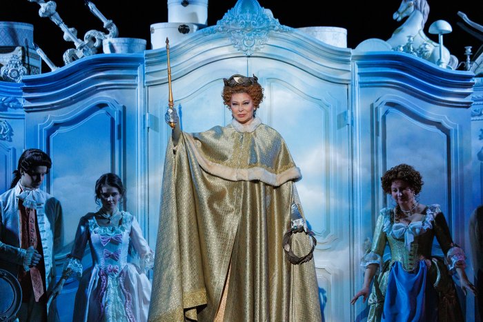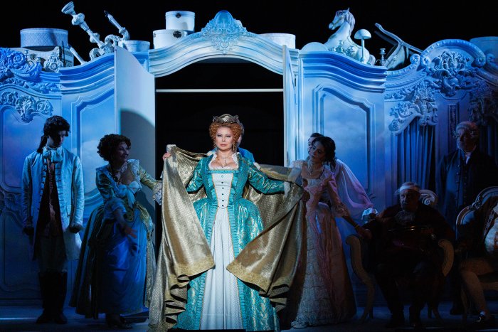 Пьеса, написанная императрицей под влиянием Мольера, впервые на сцене Малого театра. Назидательность спектакля можно буквально пощупать с первых секунд, когда сама императрица, стоя на небольшом возвышении со скипетром в руке, диктует постулаты о сущности простых вещей: ценности семьи, любви и дома, которые на деле многими очень легко забываются и развеиваются под гнетом злого языка. Насмешливая, с красивым европейским акцентом и невероятно статная, она говорит им: «Начинайте же», – и сцена оживает.