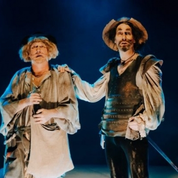 Феномен этого литературного произведения принадлежит вершинам мирового искусства, который со сцены театра «У Никитских ворот», в очередной раз обратится к людям со своим зовом добра и кристальной честности. Основной лейтмотив постановки – проклятие сатанизму и гимн любви! Спектакль поставлен в жанре фантастического реализма, построенного на вымышленной правде, созданной Сервантесом и Булгаковым. Он насыщен юмором, танцами, иронией и неожиданными поворотами сюжета.