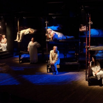 Знаменитая горьковская «Матрица» — жизнь без купюр — такая, какая есть. Спектакль, вскрывающий Человеческое в человеке. На ослеплено черной сцене – многоэтажные нары, как конструкция мира, невидимая этому миру. Для чего люди опускаются на дно? Утонули они или прячутся от чего-то? Этот спектакль – художественные весы для души. Сколько же она весит, если стольких тянет на дно?!